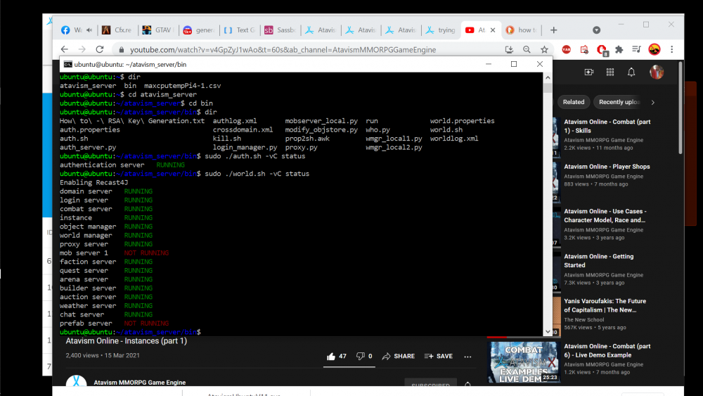 bcel-6.2.jar' seems to be taking a long time to load? update it was the size of the console window obscuring the command prompt (facepalm) ./auth.sh -vC start *** Archiving auth logs *** test *** Starting master server *** AO_HOME is .. Using .jar files from the /dist hierarchy Using property file ../bin/auth.properties Using log directory ../logs/master Using common directory ../config/common, bin directory ../bin JAVA_FLAGS="-client -cp ../other/rhino1_5R5/js.jar:../other/mysql-connector-java-8.0.24.jar:../dist/lib/injected.jar:../dist/lib/atavism.jar:../dist/lib/agis.jar:../other/java-getopt-1.0.11.jar:../other/jython.jar:../other/log4j-api-2.14.1.jar:../other/log4j-core-2.14.1.jar:../other/disruptor-3.4.2.jar:../other/bcel-6.2.jar:. -Datavism.propertyfile=../bin/auth.properties -Datavism.logs=../logs/master" Starting authentication server: SUCCESS Wait for finished initializing msg... pi4-atavism@pi4atavism-desktop:~/atavism_server/bin$ *sys-package-mgr*: processing new jar, '/home/pi4-atavism/atavism_server/other/rhino1_5R5/js.jar' *sys-package-mgr*: processing new jar, '/home/pi4-atavism/atavism_server/other/mysql-connector-java-8.0.24.jar' *sys-package-mgr*: processing new jar, '/home/pi4-atavism/atavism_server/dist/lib/injected.jar' *sys-package-mgr*: processing new jar, '/home/pi4-atavism/atavism_server/dist/lib/atavism.jar' *sys-package-mgr*: processing new jar, '/home/pi4-atavism/atavism_server/dist/lib/agis.jar' *sys-package-mgr*: processing new jar, '/home/pi4-atavism/atavism_server/other/java-getopt-1.0.11.jar' *sys-package-mgr*: processing new jar, '/home/pi4-atavism/atavism_server/other/jython.jar' *sys-package-mgr*: processing new jar, '/home/pi4-atavism/atavism_server/other/log4j-api-2.14.1.jar' *sys-package-mgr*: processing new jar, '/home/pi4-atavism/atavism_server/other/log4j-core-2.14.1.jar' *sys-package-mgr*: processing new jar, '/home/pi4-atavism/atavism_server/other/disruptor-3.4.2.jar' *sys-package-mgr*: processing new jar, '/home/pi4-atavism/atavism_server/other/bcel-6.2.jar'