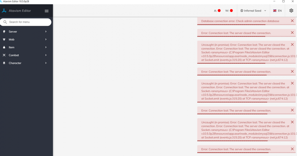 signed up for north networking server, put all details into editor. When i hit test server it does nothing. When i try to connect i get connection lost server closed connection then i get uncaught ( in promise ) : error connection lost .... please help